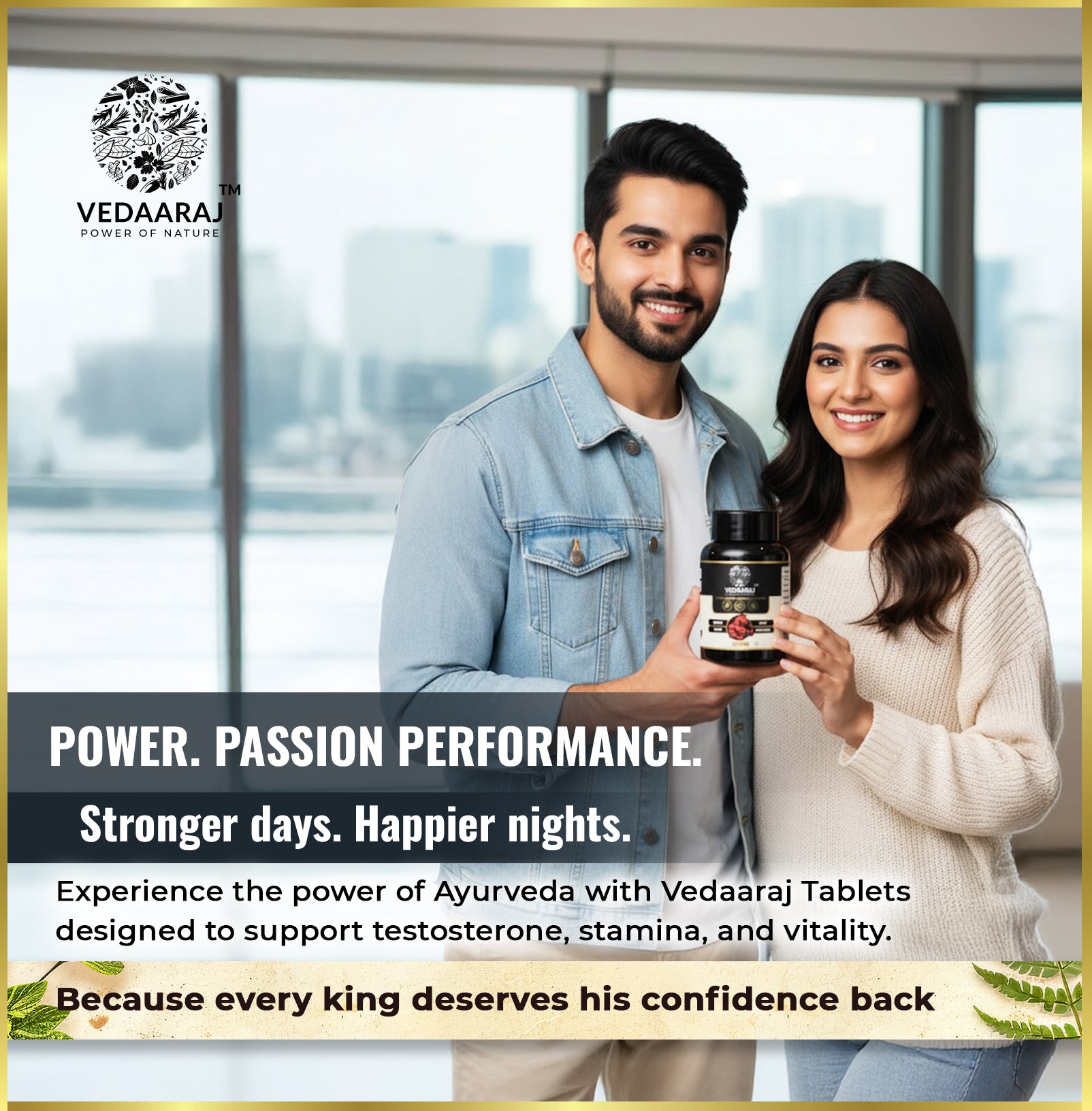 Vedaaraj® Tablets are crafted with ancient herbs like Shilajit and Ashwagandha to enhance stamina and reduce stress — helping men regain balance and confidence the natural way.
