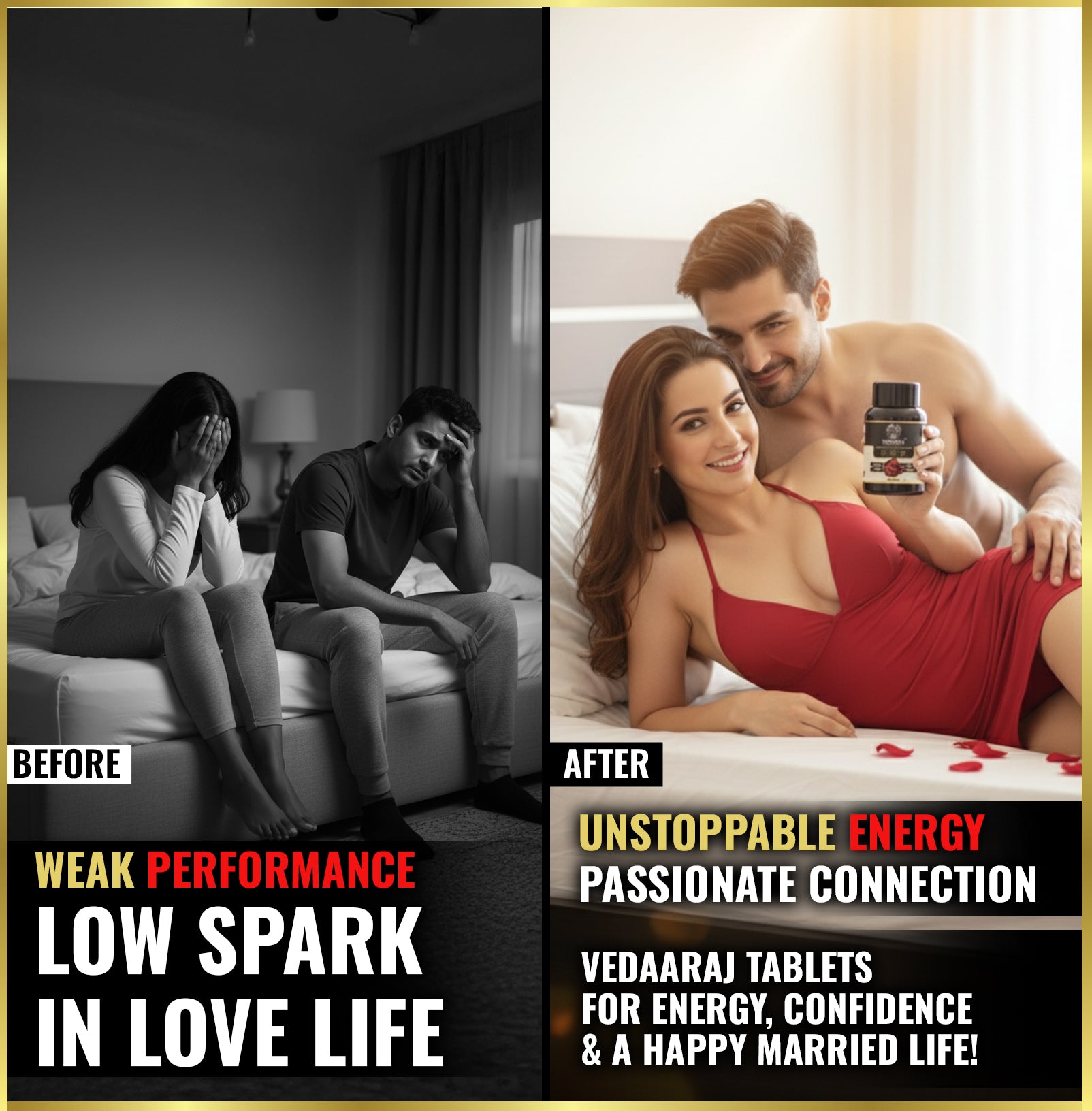 शुरू में भरोसा नहीं था लेकिन एक महीने बाद खुद रिज़ल्ट महसूस हुआ। स्टैमिना बढ़ गया और पार्टनर भी खुश है। Vedaaraj® Tablets ने उम्मीद से ज़्यादा असर दिखाया।